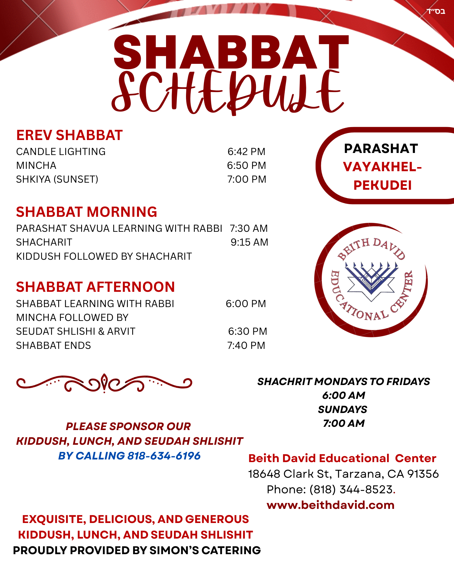 Beith David has been serving the community for more than 30 years with the core mission of fostering Judaism and nurturing faith within our community, built on the principles of transparency, integrity, and accountability. With daily prayer services, numerous Torah classes, and a wide array of frequent events we strive to help the community grow spiritually and to bring Jewish families closer together.